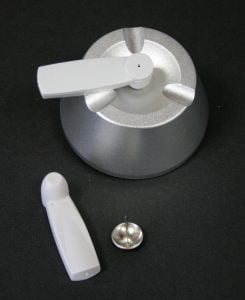 Etiqueta antihurto rigida AM mini pencil flat 58 Mhz cierre super color blanco fabricado en plastico abs incluye clavo suministrada en cajas de 1000 unidades.