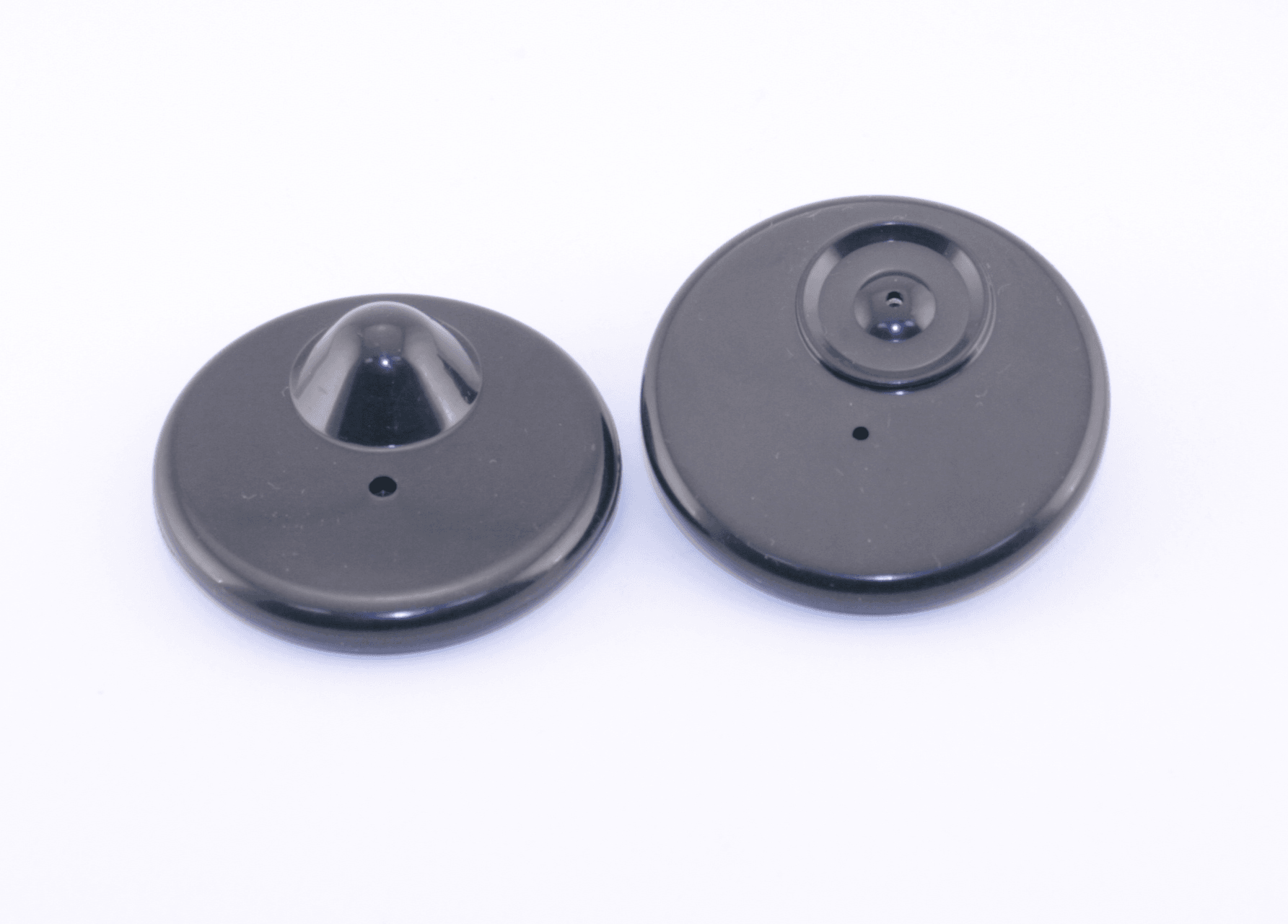 Etiqueta antihurto rigida RF R50 8,2 Mhz cierre super color negro fabricado en plastico abs incluye clavo suministrada en cajas de 1000 unidades.